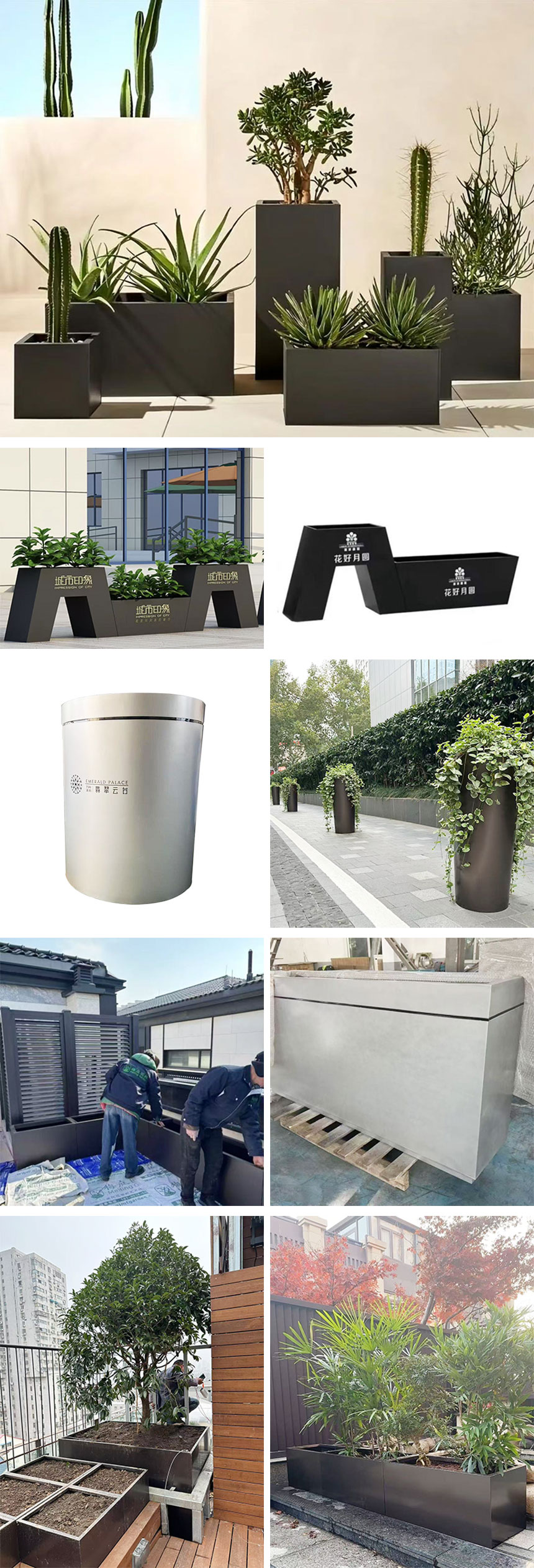 不锈钢花箱首先在美观上来说是非常百搭的,金属质感给人一种高端大气上档次的视觉享受,颜色简单却不显单调,无论是在高端商业街,还是在普通小区,无论是种花还是种草,不锈钢花箱的装饰永远都不会显得突兀。