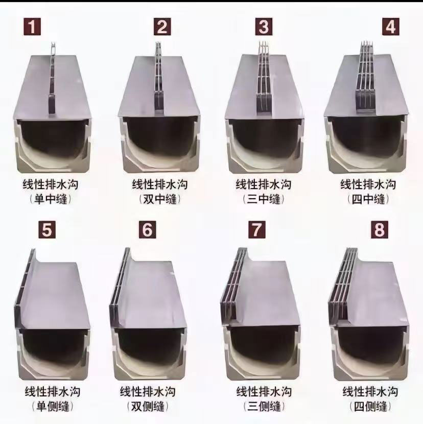 线性排水沟盖板分2种:侧缝式 中缝式